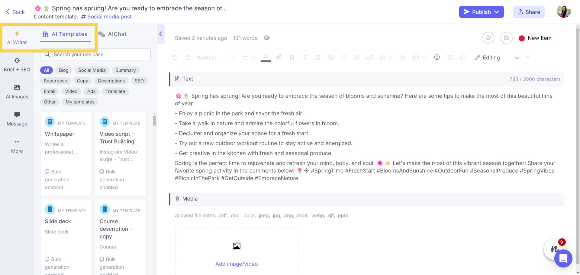 If you don't see a template that suits your requirements, you can even generate a custom AI template with your own prompt.